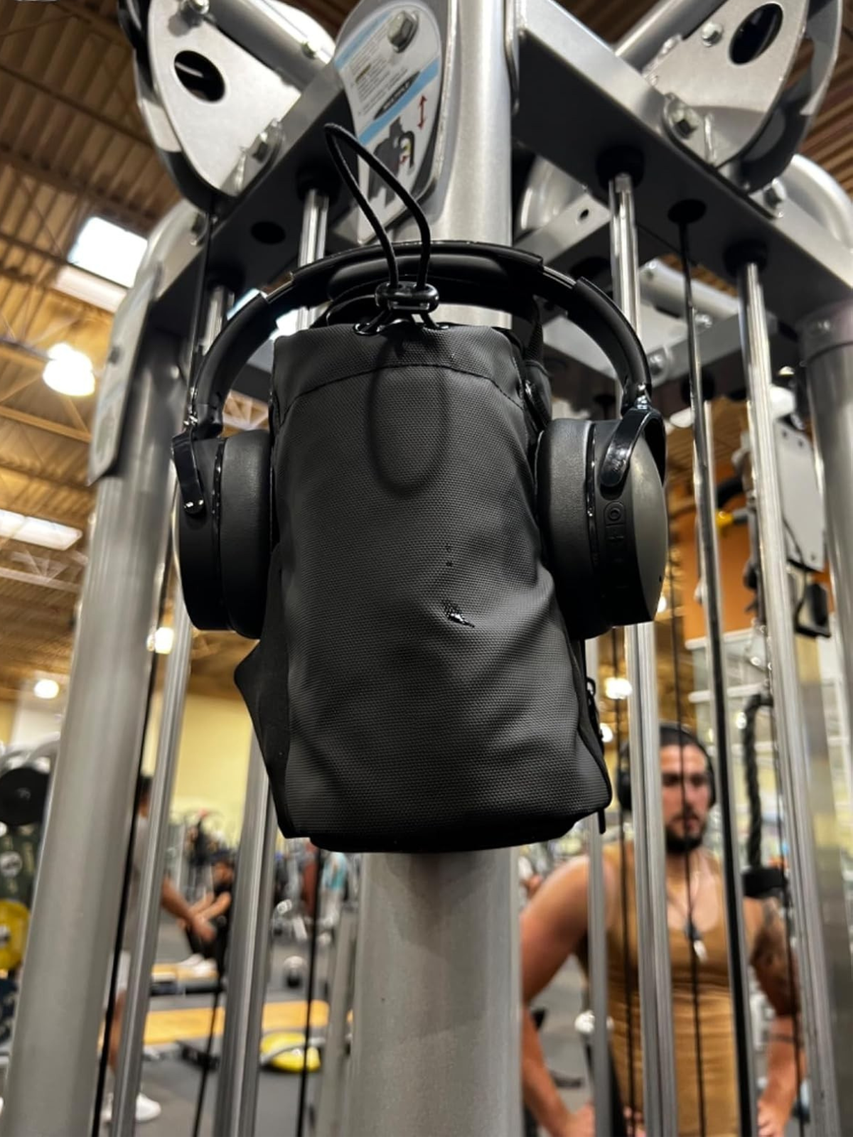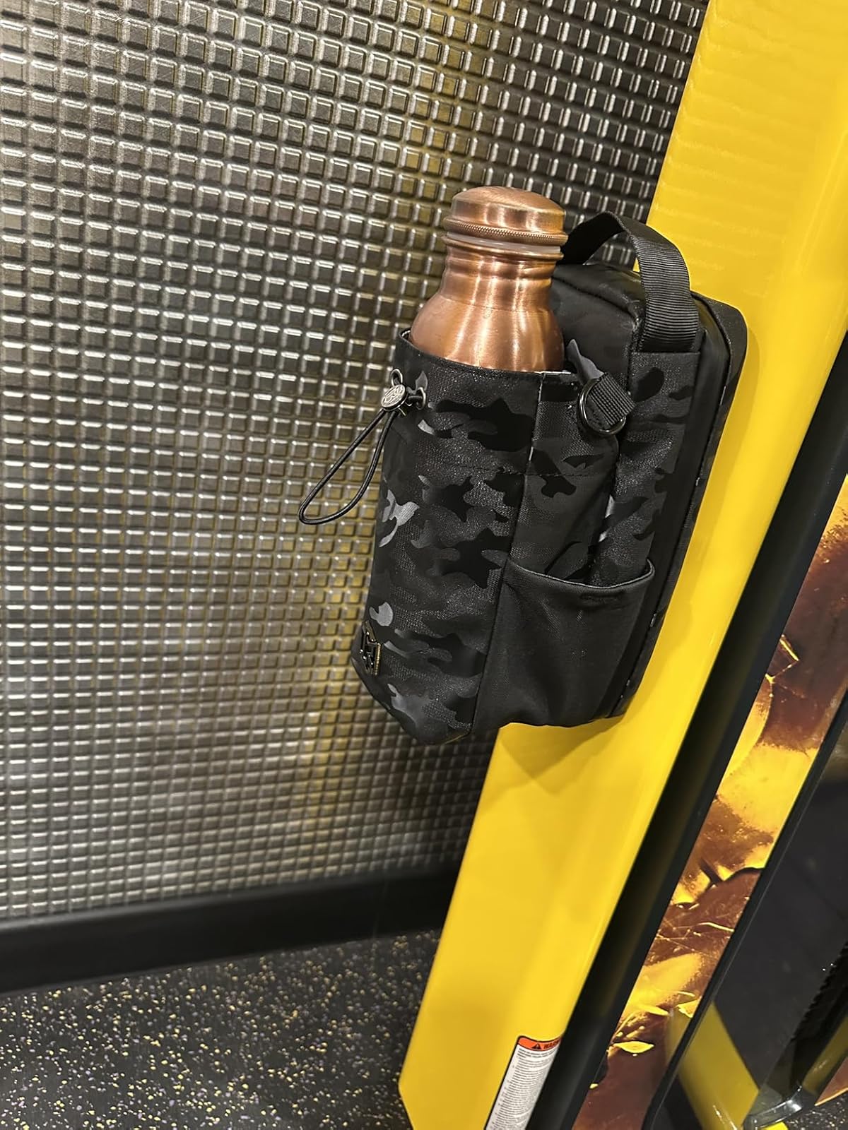 This bag is awesome!! I never know where to put my things when I go to the gym, but now with this bag, everything is in one place AND off the floor! My water bottle and phone are now in an arms reach! The magnet is sooo strong too. It really can hold a full water bottle! Best purchase I've ever made.